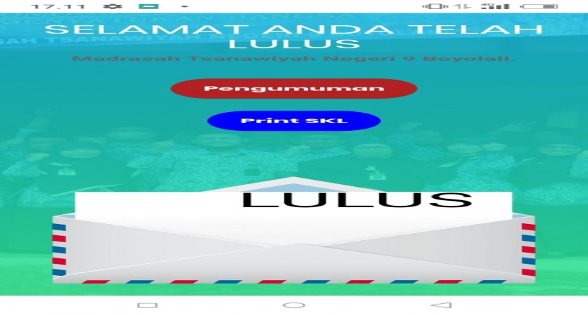 “Pengumuman kelulusan tahun ini rencana akan disampaikan secara daring seperti tahun sebelumnya. Hasilnya dapat dilihat melalui hand phone dengan cara menginput nomer induk sekolah peserta didik dan password adalah tanggal lahir masing – masing siswa di link http://kelulusan.mtsn9boyolali.sch.id/. Dengan menginput data tersebut peserta didik akan mengetahui informasi lulus atau tidaknya serta informasi tambahan,” jelasnya.